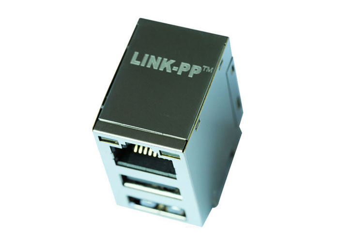 | RJ45 Magjack với 10/100/1000 Base-T tích hợp Magnetics Với Dual USB, Orange & Xanh / Vàng LED, Tab Up, RoHS | |